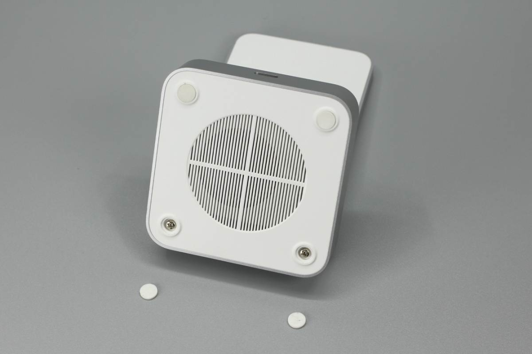 底部四端有防滑膠墊,中心設有進氣窗口。