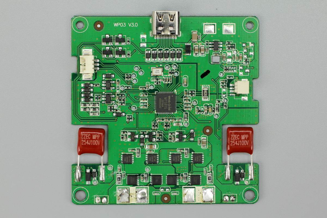 無線充電主控芯片采用美芯晟MT5815。這是一款帶有USB-PD協(xié)議、高度集成的符合Qi標準的無線充電發(fā)射芯片,支持高達50W的輸出功率,向下兼容不受限。