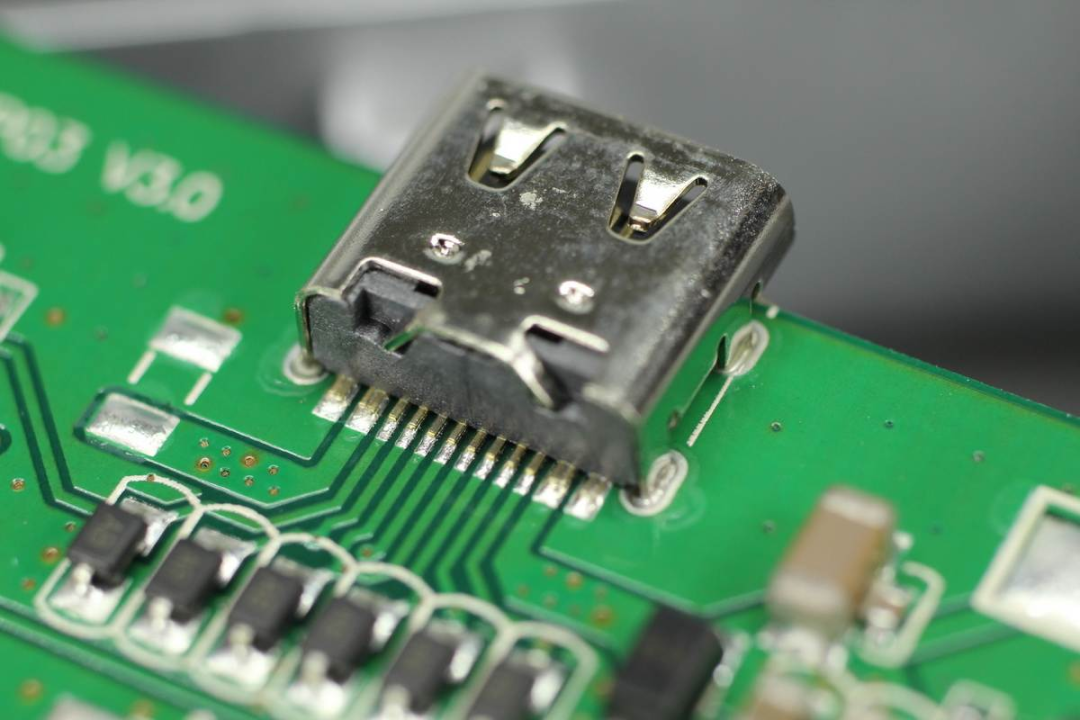 隔離塑料板以及PCB板也是使用兩顆螺絲進行固定,PCB板背面沒有設元器件,兩側(cè)的兩顆電容處鏤空處理。