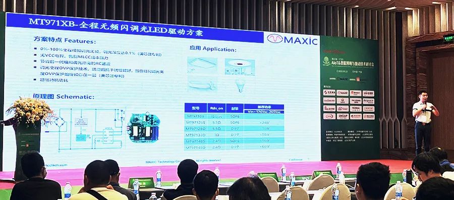 會(huì)上,美芯晟市場(chǎng)總監(jiān)以《LED照明之美芯晟最新解決方案》為主題演講,重點(diǎn)講述了美芯晟在智能照明和通用照明應(yīng)用上的產(chǎn)品方案,并向參會(huì)嘉賓展示了美芯晟作為智能照明廠商的核心供應(yīng)商從團(tuán)隊(duì)、技術(shù)創(chuàng)新和產(chǎn)品三個(gè)方面所具備的優(yōu)勢(shì)。