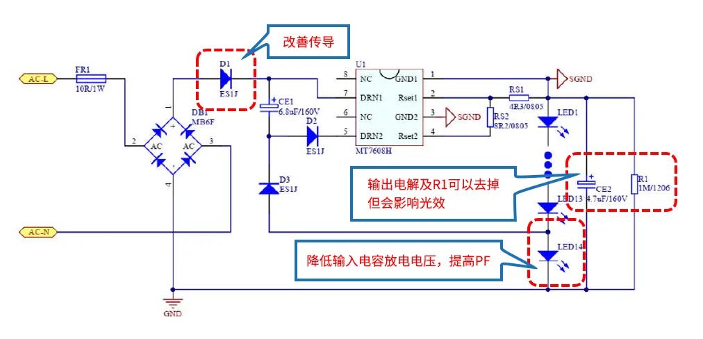 在一眾巴西球泡燈應用方案中,MT7608H雙壓線性解決方案因其高性價比和優(yōu)越性能,市場表現(xiàn)良好。MT7608H是一款工作電壓低,外圍器件少,PF>0.7,支持AC108V-AC265V寬壓輸入,單顆10W以內的線性解決方案。