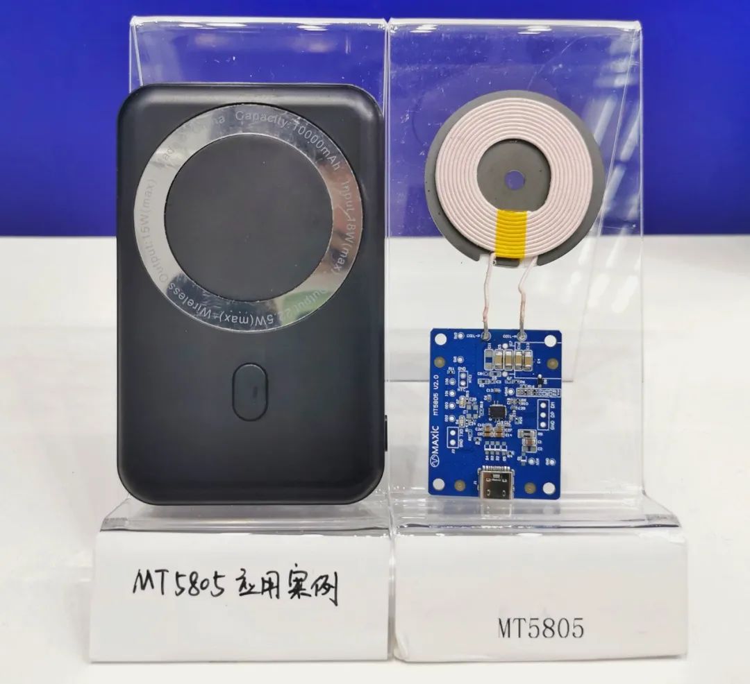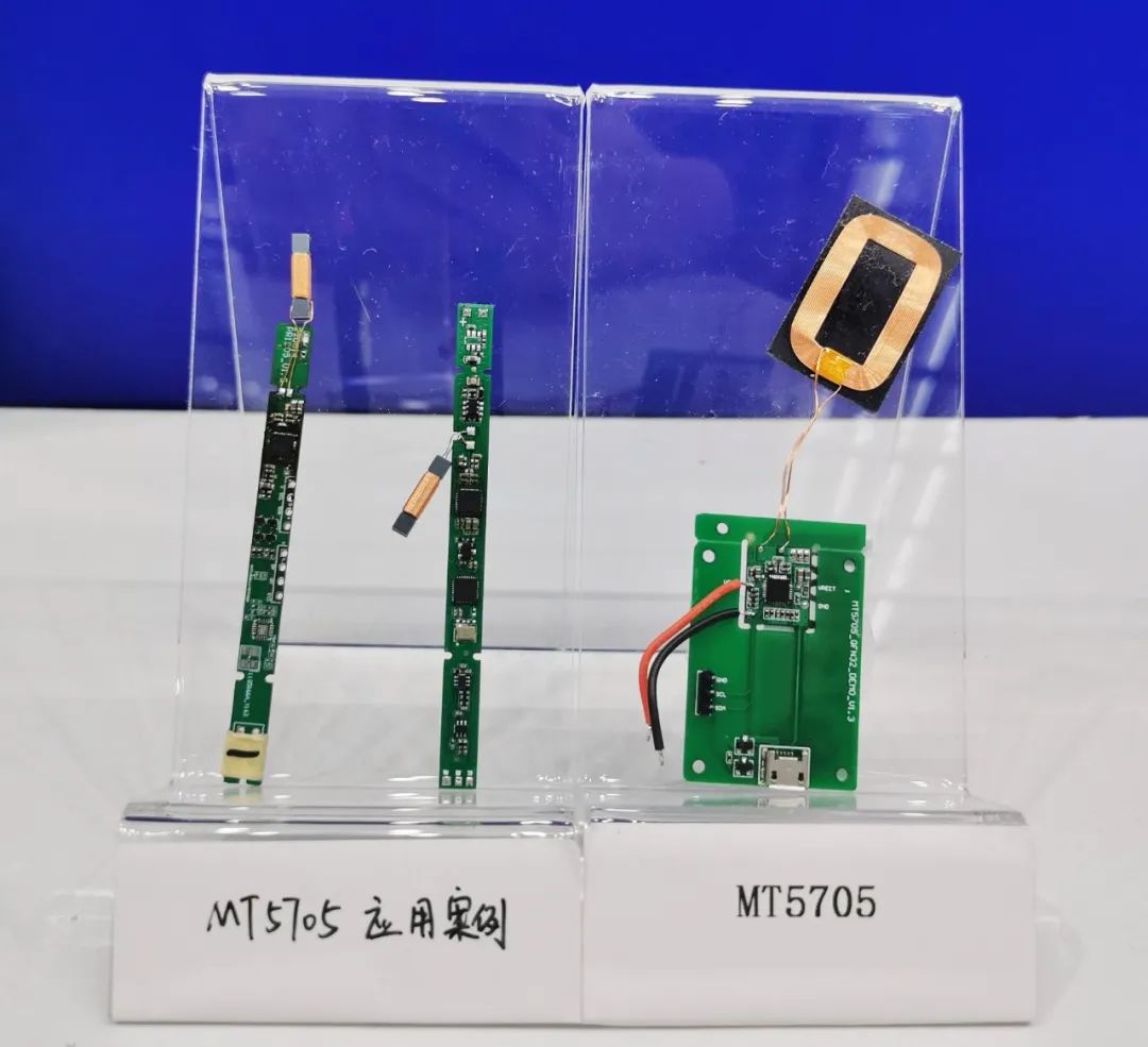 發(fā)射端芯片,為大家?guī)砹?/span>全集成、超低功率、高精度的MT5805,并在現(xiàn)場準(zhǔn)備了內(nèi)置MT5805的磁吸充電寶(自啟動應(yīng)用,速度更快,功耗更低),以便廣大客戶可以更加直觀地感受該芯片的實際應(yīng)用效果。