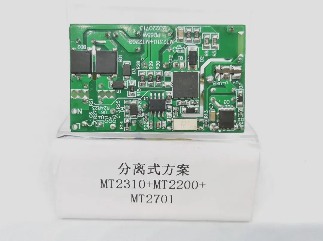 有線快充方面,美芯晟依托深厚的ACDC、SoC設(shè)計經(jīng)驗和高壓集成工藝開發(fā)技術(shù),陸續(xù)開發(fā)出了從SSR控制、SR控制到協(xié)議芯片的有線快充20W-100W的整體解決方案。通過不同的產(chǎn)品組合,形成了分離合封兩類方案,供客戶靈活選擇,實現(xiàn)多元化的應(yīng)用,可應(yīng)用于手機、筆記本電腦等便攜設(shè)備和小家電、機頂盒、LCD屏幕等產(chǎn)品。