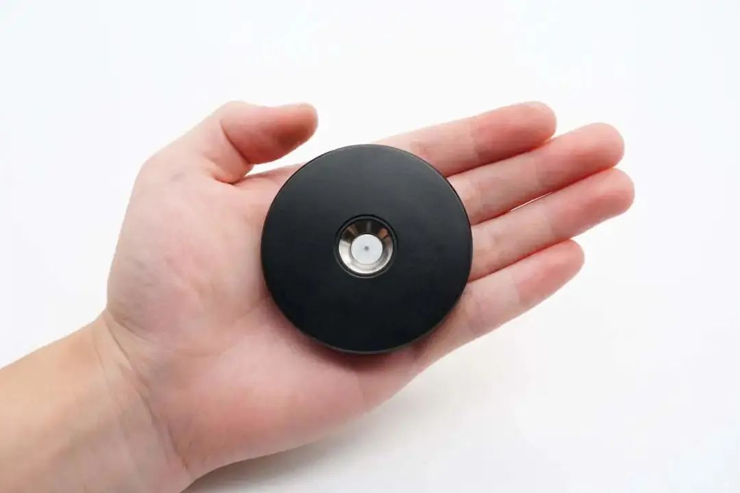 This magnetic wireless charger is composed of two parts: a pillar with a spherical top and a disc-shaped wireless charging board. After magnetic attraction, the charger board supports all rotation angle, making it convenient for users. The pillar base is equipped with a USB-C interface. The diameter of the charging board is 60.02mm, and thickness is 9.73mm.