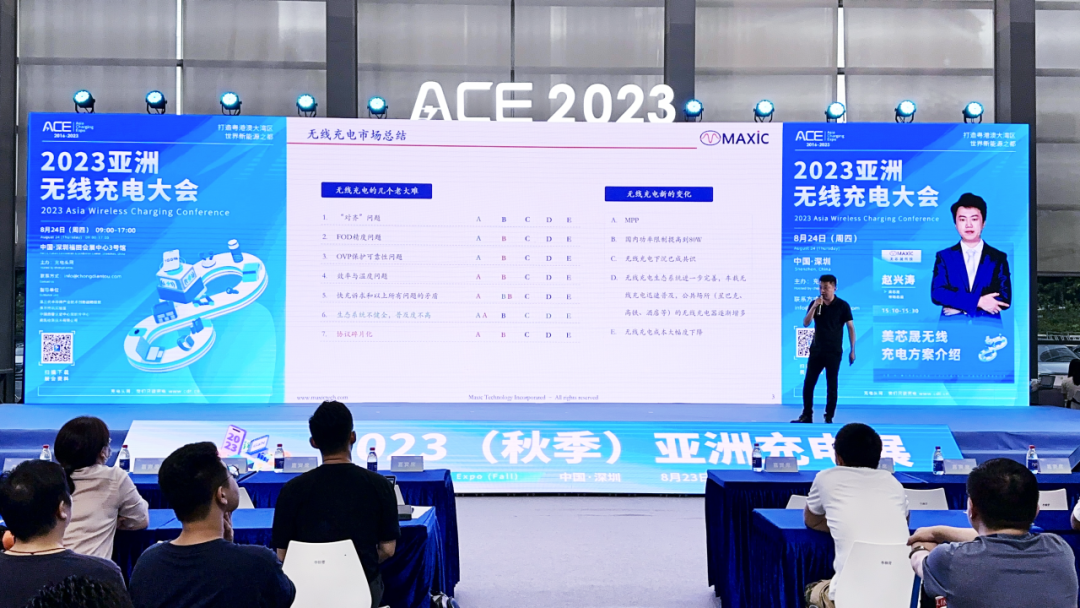 On August 24, Maxic’s marketing director delivered a keynote speech on “Introduction of Maxic Wireless Charging Scheme”. Facing the new changes and new trends of automotive wireless charging are rising rapidly, domestic wireless charging power limitation has been raised to 80W and has formed a new MPP protocol, he also shared Maxic’s newest products and solutions in the speech.