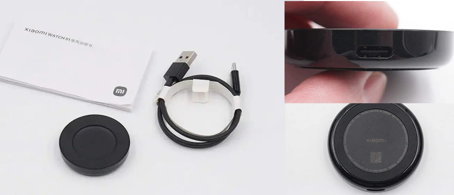 除手表以及表帶外,包裝內(nèi)還有無線充底座、數(shù)據(jù)線以及使用說明書(含三包憑證)。通過附帶配件可以了解到這款手表的其中一大賣點便是支持磁吸無線充電,隨放隨充十分方便。附帶線纜是A to C短線,方便攜帶和使用。