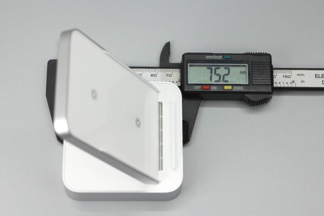 使用游標(biāo)卡尺測得無線充底座長度為75.2mm。