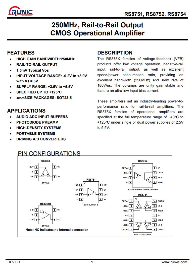 潤石 RS8751 單運(yùn)放,用于信號處理。